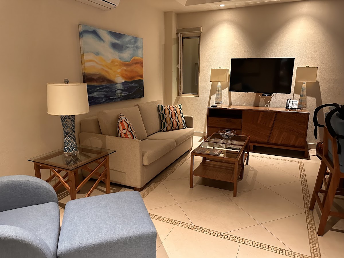 We’ve been coming to Puerto Vallarta (Zona Romantica, Amapas) almost every year since 2016. We’ve stayed once at the Brisas Del Mar but have since stayed at One Beach Street Vallarta ever since. That all came to an end in 2025 as we were greeted with news of an electrical problem meaning no air conditioning in the room at One Beach Street. It was June and it was very muggy & hot. That was a no-go. Plus, the room wasn’t the nicest or cleanest either. EXPERIENCE: We simply walked across the street to check out V Azul. We actually watched it being built back in 2016 while staying at Brisas Del Mar, jackhammering and all. Funny but not funny that 9 years later, we stayed at V Azul and the jackhammering continued as neighboring Condominios Torre Malibu AC was redoing their pool. If you can’t laugh it off, you’ll go crazy! LOBBY: We walked into the cool, clean, all-glass lobby to a friendly gal. We told her our situation, got to see the available room and was sold. The “hotel” is small, 12 rooms on 4 floors, with a small pool and outdoor kitchen amenities on the rooftop 6th floor. ROOM 401: It’s a beautiful ocean view, 1 bedroom with private balcony apartment really. The kitchen came fully stocked with everything expected, a full-sized refrigerator & freezer with ice maker, 4-burner stove with full-sized oven, toaster oven, microwave & coffee maker. A stacked washer & dryer was hidden in a cabinet which we used daily, along with an iron & board. The living room had a pull out and single sofa, coffee table and TV with Roku. Wi-Fi was strong. Two split unit a/c’s, one in the living room and one in the bedroom kept us nice and cool. The only negative was that once the front, sliding doors or any windows were opened, the system would completely turn off, forcing you to manually turn them back on. Oddly there was no seal under the front door which contradicted the energy-saving effort and also let in some noise from the jackhammering happening next door and a huge roach on our last night. There was a brief power outage on night seven of eight, which resulted in both a/c’s becoming inoperable, forcing us to sleep in heat. Maintenance quickly resolved it the next day. The bedroom was perfectly-sized with a small closet, safe, comfortable king bed and fairly good pillows. The balcony was a good size, spanned the bedroom to the living room and featured a small table and two chairs. Sunset views were sweet. The bathroom featured an oversized shower, plenty of hot water and good water pressure. My only gripe was I couldn’t adjust the shower head’s spray style, and some of the nozzles needed poking as calcium build up created wayward streams . Two-way access via the kitchen & bedroom was very convenient. Power outlets were standard 110 volt and plentiful. TIP: No children allowed. OVERALL: Quaint, clean, newer, quiet (if no neighboring construction is going on), conveniently located one block from the beach and within walking distance to Zona Romantica.